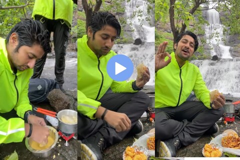 या व्हिडिओत आकाश कुठलीही स्टंटबाजी करत नसून त्याने निर्सर्गाच्या सानिध्यात चक्क चूल मांडली आहे. आकाश या व्हिडिओमध्ये सगळ्यांसाठी चक्क गरमागरम भजी बनवताना दिसतो आहे. आकाशने हा व्हिडीओ पोस्ट करत 'सुख...' असं म्हटलं आहे. या व्हिडिओत आकाशने धबधब्याच्या काठीच एक छोटी शेगडी पेटवली, त्यावर पातेलं ठेवून तेल गरम केलं आणि चक्क त्यात बटाटा भजी तळली आणि सगळ्यांना खाऊ घातली. आकाशच्या या व्हिडिओवर चाहत्यांनी भन्नाट प्रतिक्रिया दिल्या आहे.